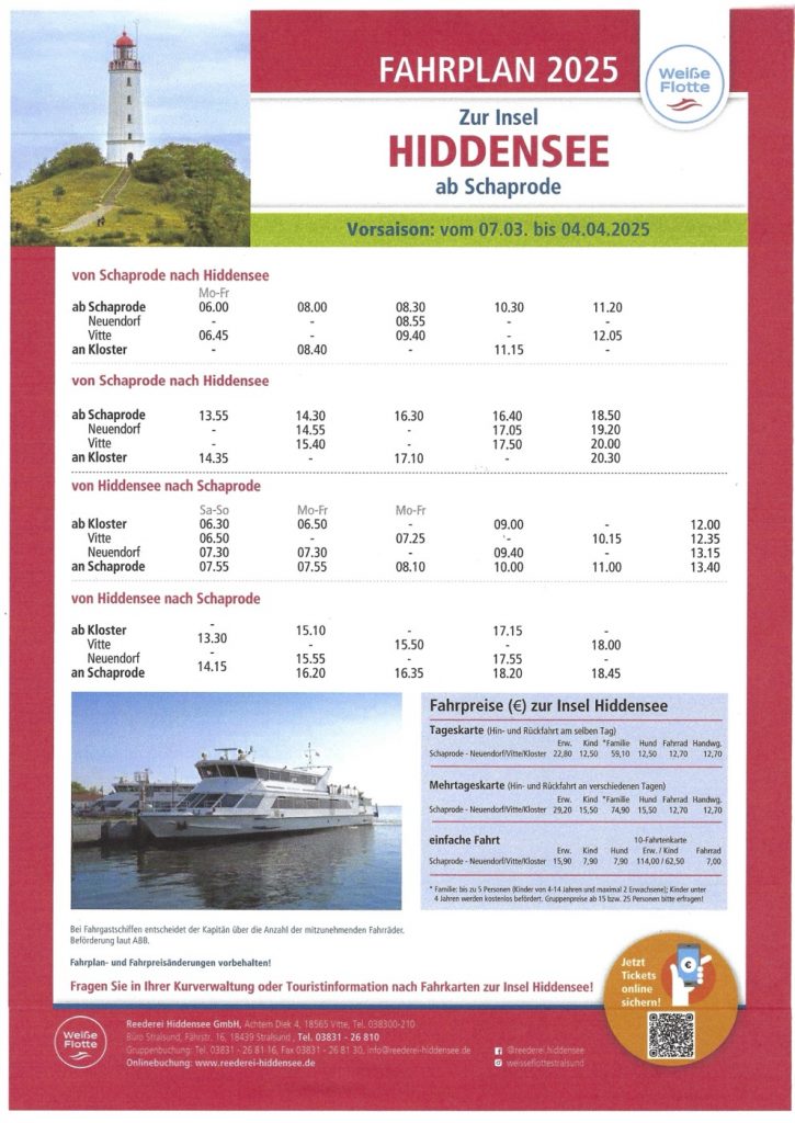 Tipp: Aktuelle Fahrpläne finden Sie direkt bei der Reederei Hiddensee.